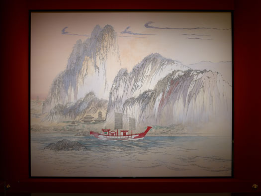 堂内には田渕俊夫画伯により描かれた食堂ご本尊「阿弥陀三尊浄土図」を中心に、全長約50メートルにわたる壁画「仏教伝来の道と薬師寺」が奉納されます。