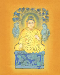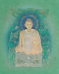 第六 転法輪 ![]() 成道をされたお釈迦さまは、鹿野苑(サールナート)で初めて説法をされ、この時より四十五年にもわたる長い伝道の旅をお続けになられました。 |