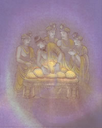 第三 受楽 ![]() 釈迦族の王子としてお生まれになったお釈迦さまは、カピラバストゥの宮殿で、何不自由ない生活を送り、歌舞音曲など、この世の享楽を受けられました。 |